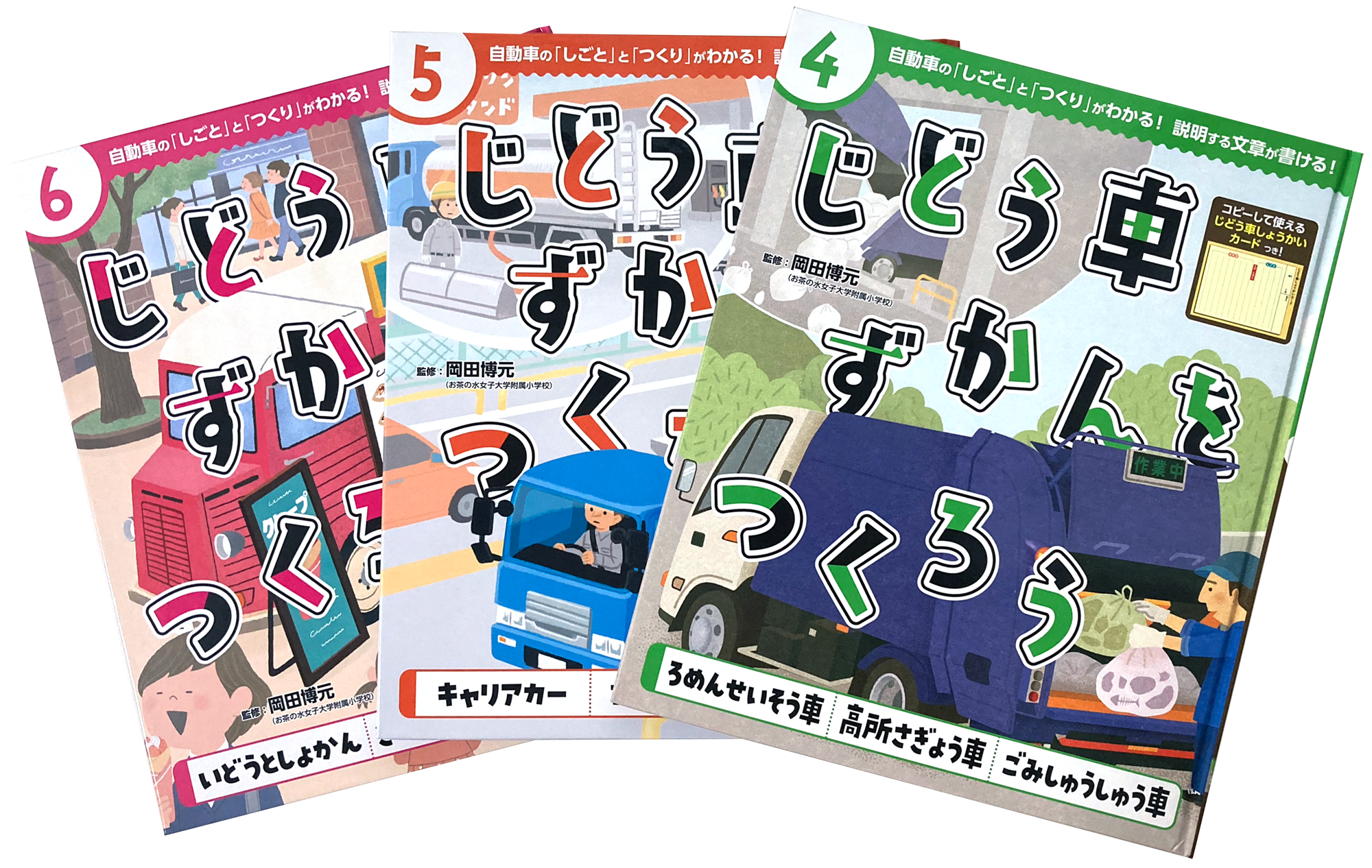 じどう車ずかんをつくろう(ポプラ社)/イラスト:4巻 ヤス・タグチータ プレミアム、5巻 青山ゆういち、6巻 田原直子